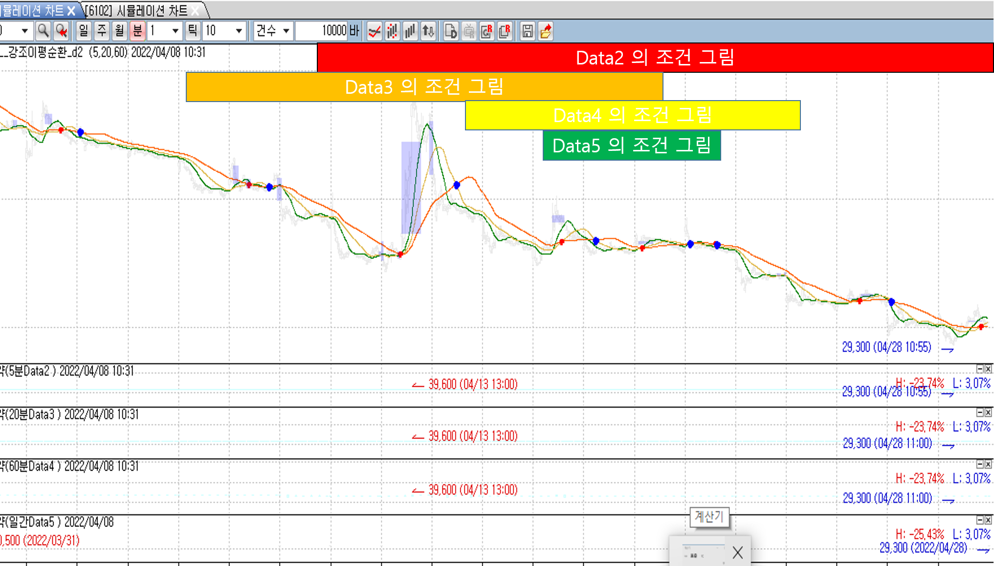 (data1 은 이평선 위 그리는 것이 맞습니다.)