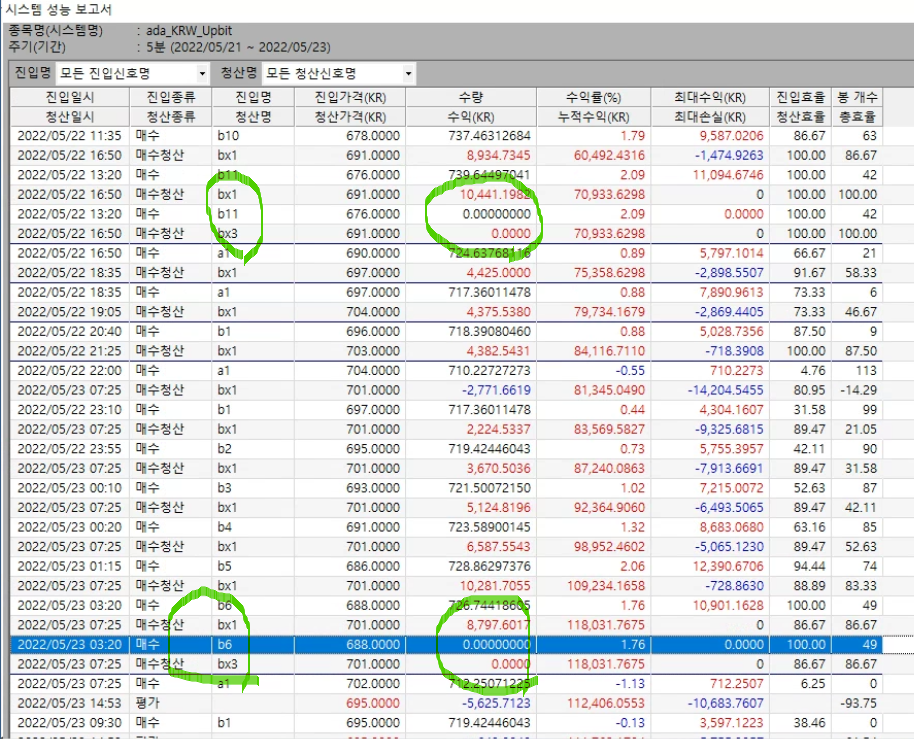 위와같이 적용해보니 bx3가 들어가지 않고 정상적으로 매도가 이루어 지고 있습니다.