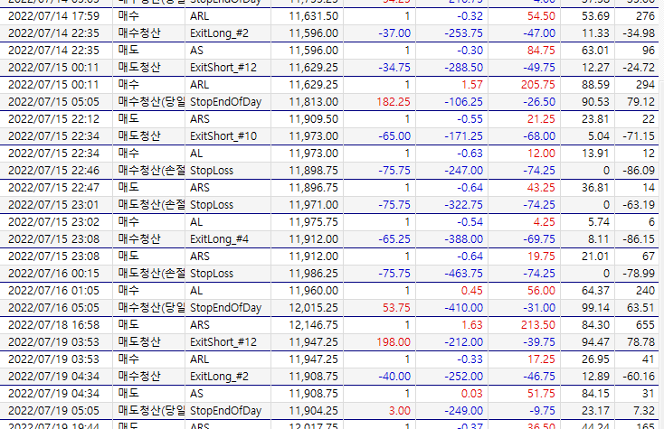 예스트레이더 스크립트에서 위와 같은 강제청산함수를 실행했을 때 지정한 가격(손실가격,수익가격)에 청산되고 지정한시각(청산시각)에 청산되는 마킹(S,또는 X)을 전략실행챠트에 정확히 표기가 되며 성과분석 거래내역에도 분명히 청산된것으로 표기됩니다. 그런데 시스템자동주문은 되지 않고 있습니다. 어떤 원인일까요?