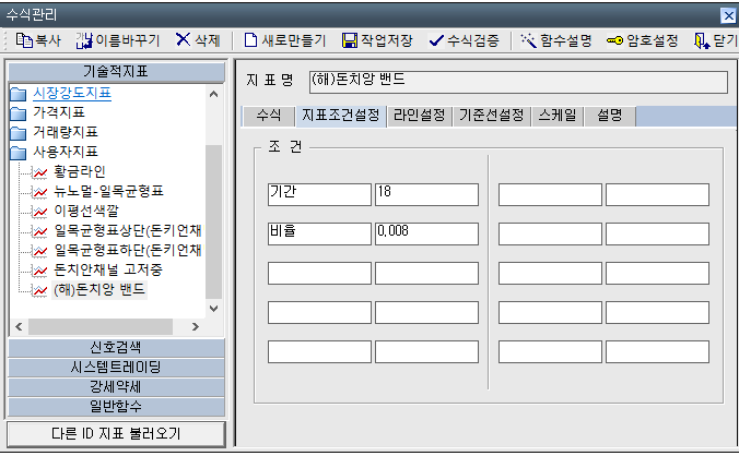 간단하게 말해서 돈키안채널 지표를 예스트레이더에 구현하고 싶습니다.