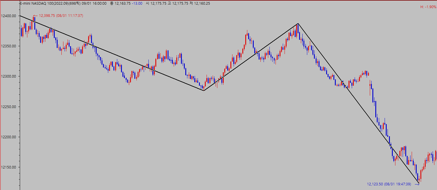 Else If 고[1,1] < HH[hiBar] Then // 1번 고점보다 높은 고가 출현