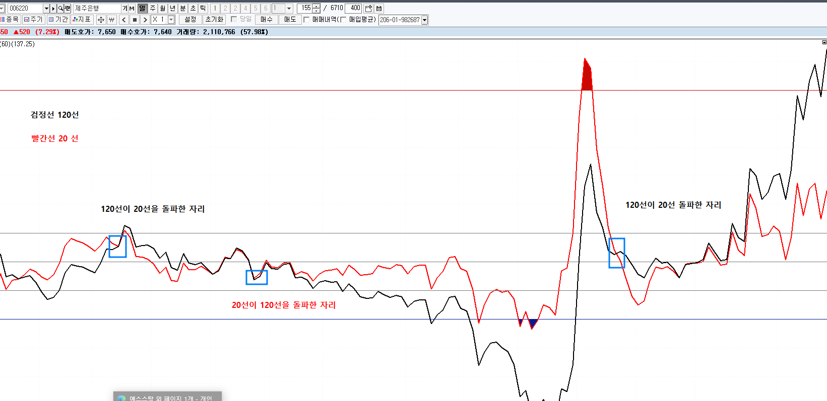 120선이 20선을 하향 돌파 할때