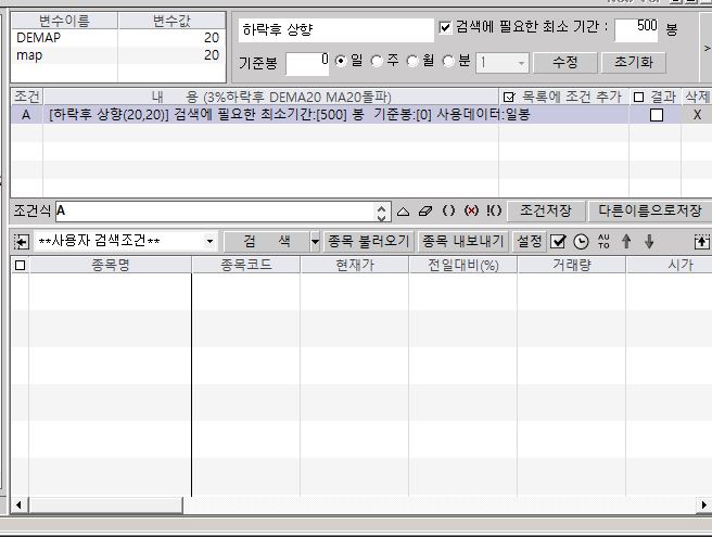 종목검색시 속성에서 검색에 필요한 최소기간에 종목검색에 제공되는 최대봉수인 500봉으로