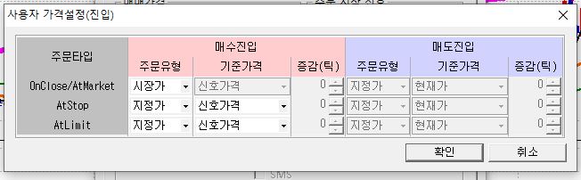 그러므로 설정창에서 신호가격으로 지정하시면 완성봉 종가의 가격으로 주문이 집행됩니다.