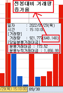1. 분봉 상 전봉대비 증가율을 볼 수 있게 하고 싶습니다.
