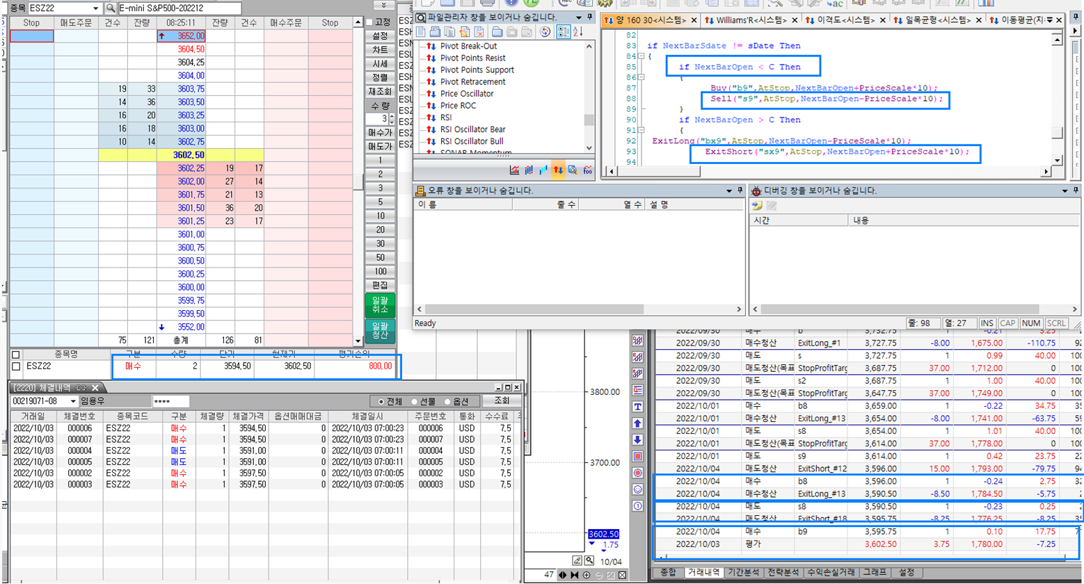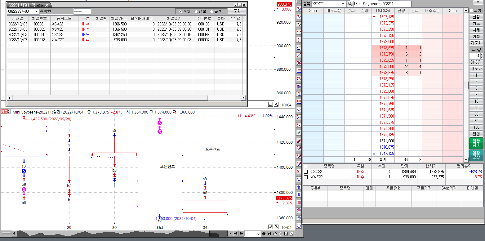 장시작후 1계약 주문인데 체결내역은 2,3계약으로 주문후 체결이 되어 있습니다.
