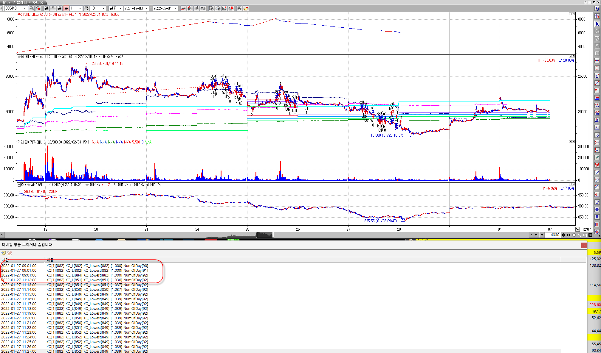 MessageLog("KQ[1][%.0f] KQ_L[%.0f] KQ_Lowest[%.0f] [%.3f] NumOfDay[%.0f]", KorMarket1DayBefore, Data2(L), KorMarketLow, KorMarket1DayBefore/KorMarketLow, NumOfDay);