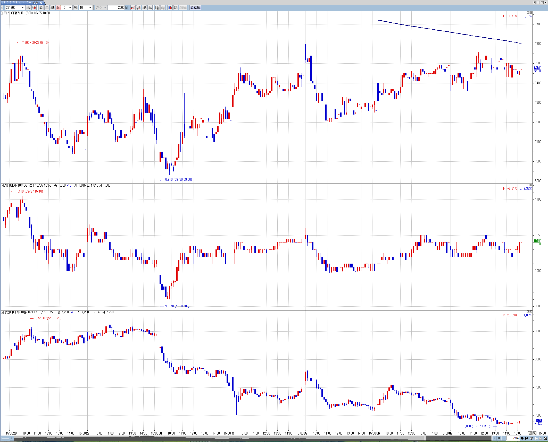 각 데이타별로 따로 지표식 만드셔야 합니다.