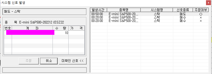 경보후주문은 신호발생하면 첨부하신 그림과 같은 확인창이 발생하고