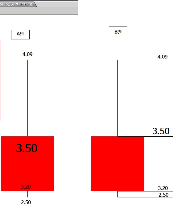 개인적으론 A안을 원하지만, 만약 수식적으로 불가능하다면 B안도 좋은 대안이라 생각합니다. 가격들의 글자 크기와 색상들는 제가 설정할 수 있게 외부변수로 만들어 주시 길 희망합니다!