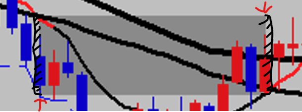 사각 박스를 그린후 박스 시작세로선과 박스 끝세로선이 캔들의 세로부분 중심부분부터