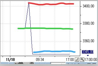 장시작 후 처음 나타난 종가를 저장하고 장마지막까지 지표값을 표시. 녹색