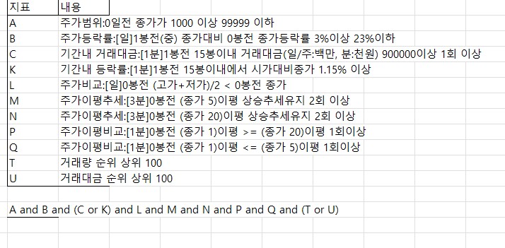 일봉조건도 지표를 이용하거나 간단한 내용이 아니면 별도로 작성이 되어야 합니다.