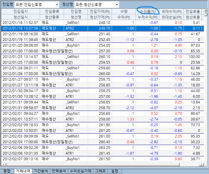 해당 전략은 1계약으로만 매수매도, 청산한 수식입니다.
