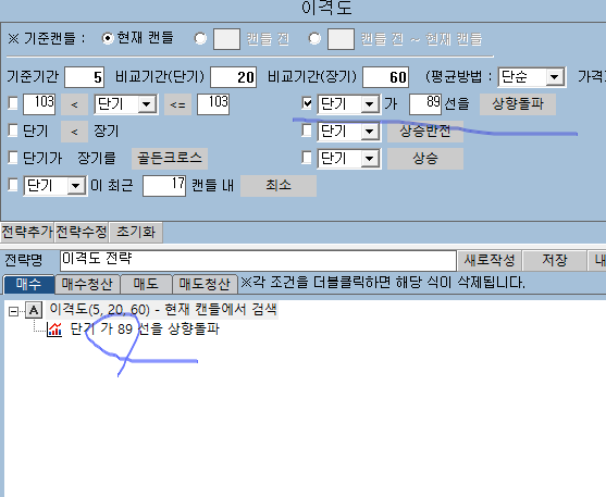> ez전략시스템에서 이격도로 전략을 만들고 있는데