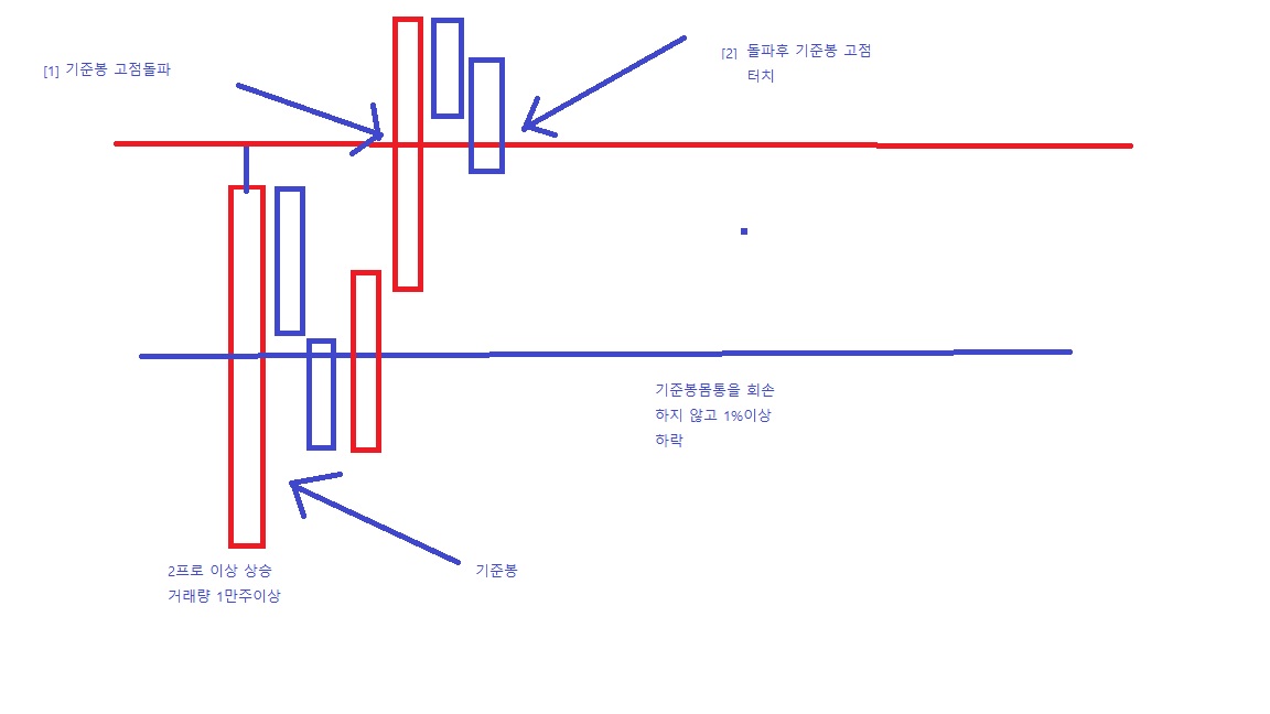 30봉이내에 2프로상승 1만주이상 양봉(기준봉) 이 있고