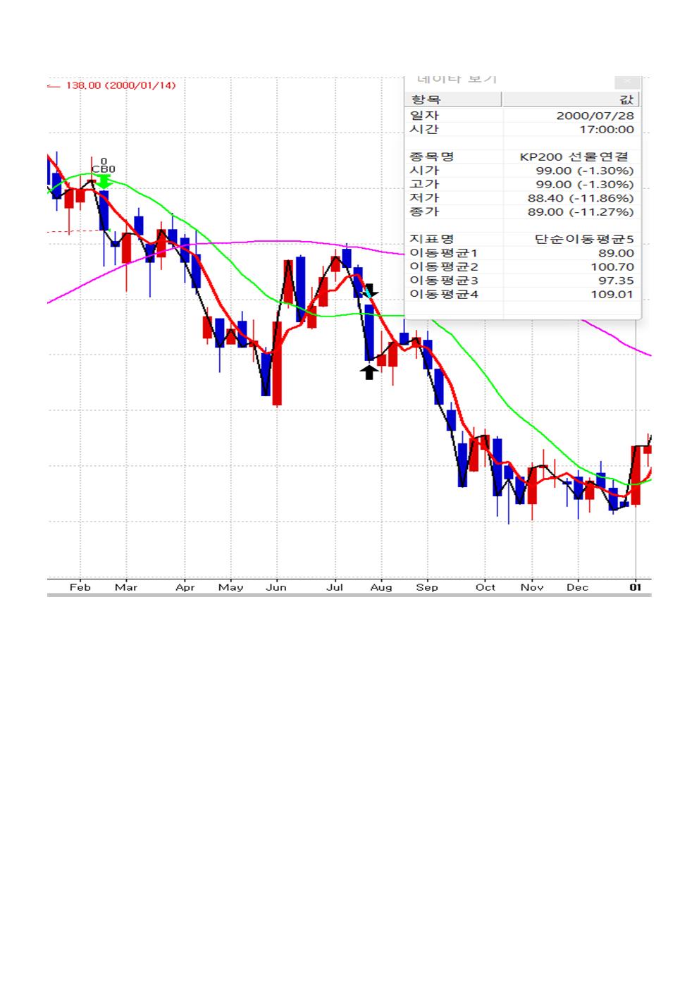 첨부된 그림과 같이 2000년 7월 28일자 봉에 신호가 발생하고 있습니다.