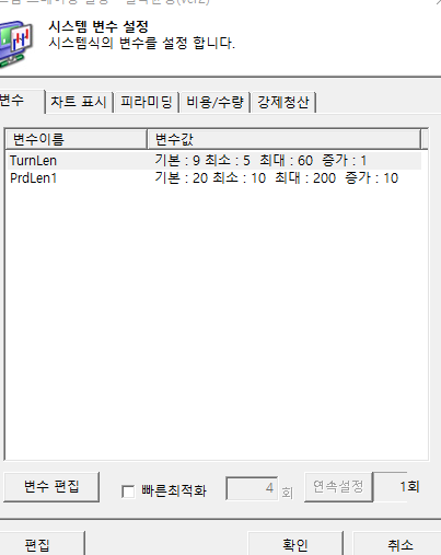 시스템 변수 설정창에서, 최적화를 할 수 있게 하고 싶습니다.