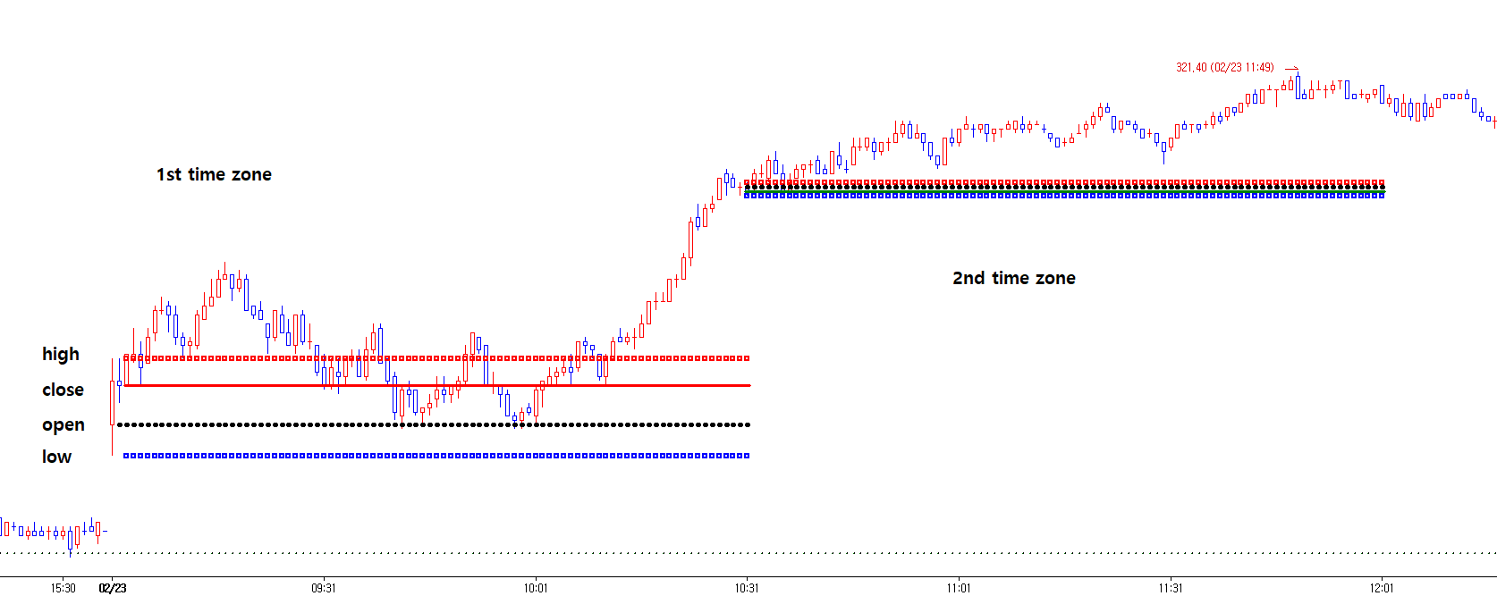 이것을 1st time zone의 경우에 시고저종가가 표시된 것처럼