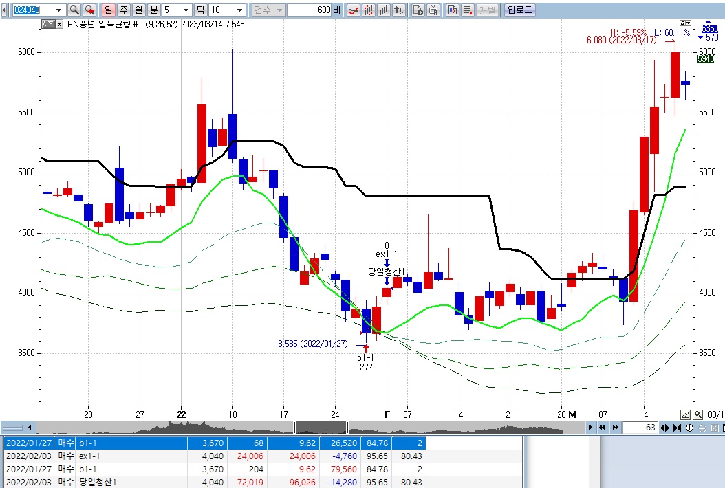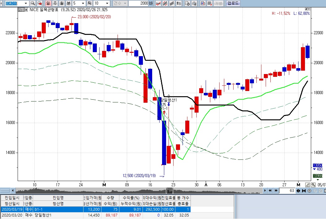 그러므로 매수가 봉완성시(다음봉시가수신)에 발생하고