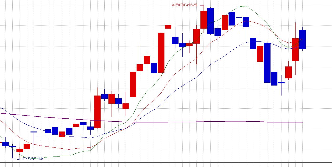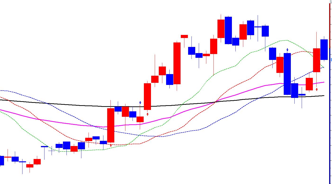 조건1. 10봉이내에 Williams Alligator 지표 이평선이 정배열로 바뀐 종목