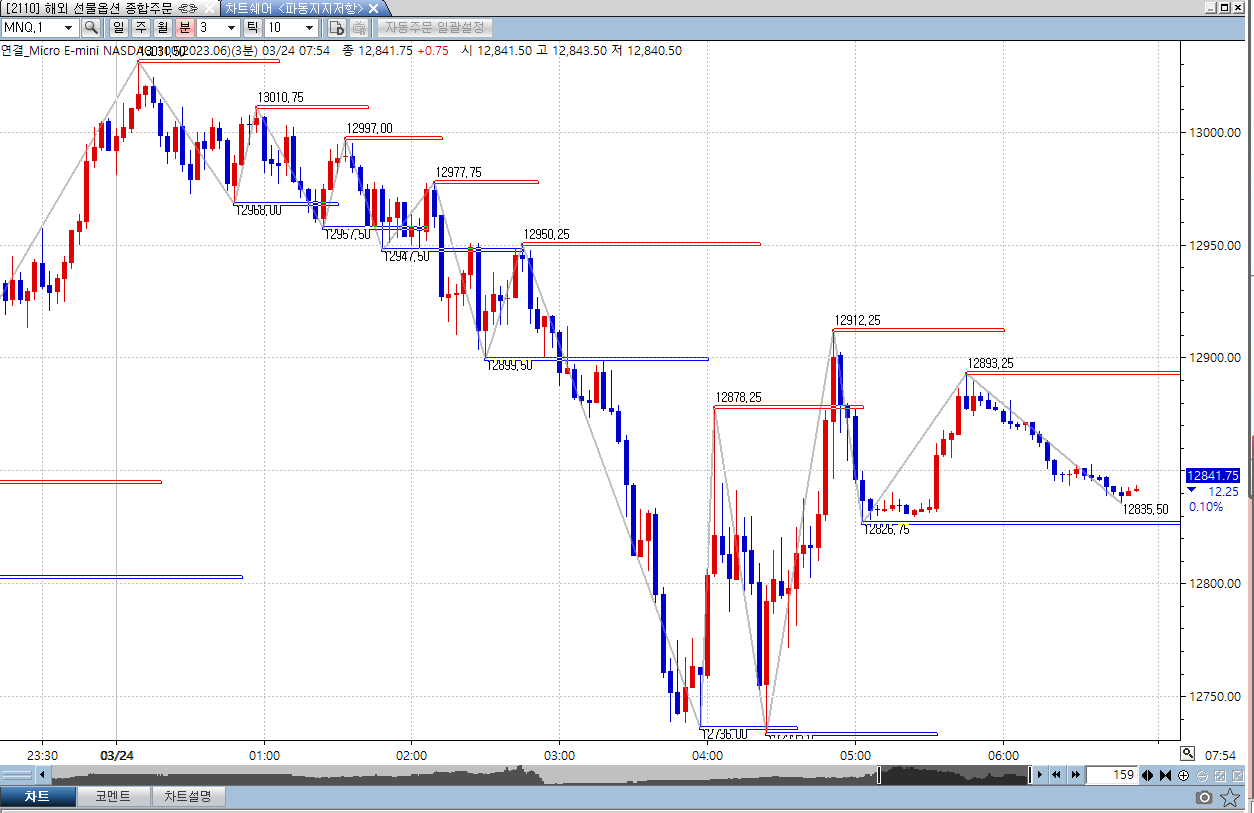 //직전 고점에서 현재 저점까지 연결선 출력