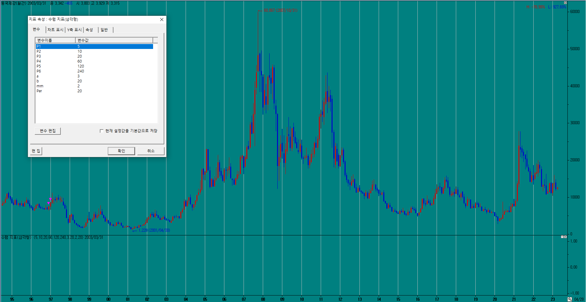 이렇게 설정하고 적용했는데 첨부파일의 캡처본과 같이 아주 예전의 봉에 표시가 됩니다.