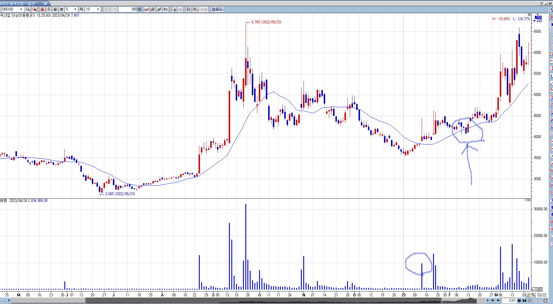 4 0봉전 기준 , 그 이전 봉 캔들이 우상향하고 있는 20일 이평선위에서 15일이상 머물러