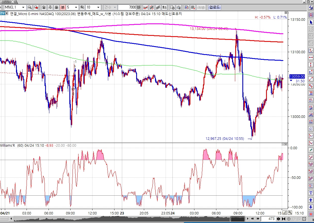 나오고, 24일 지표상은 매도 진입 신호(윌리암신호) 가 나왔는데도 시스템에서는