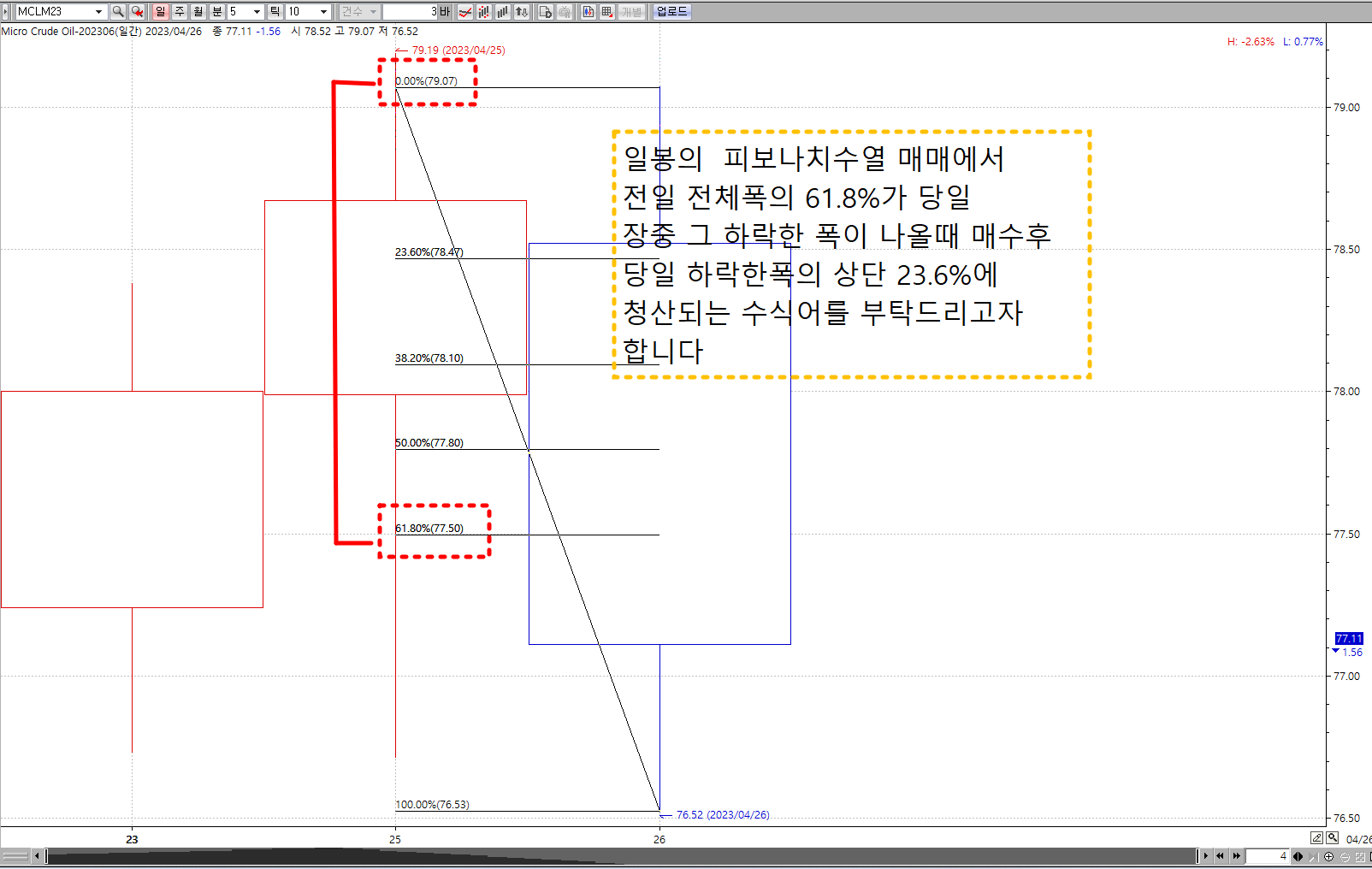 #매수 후 당일폭의 산단 23.6%에 도달하면 청산