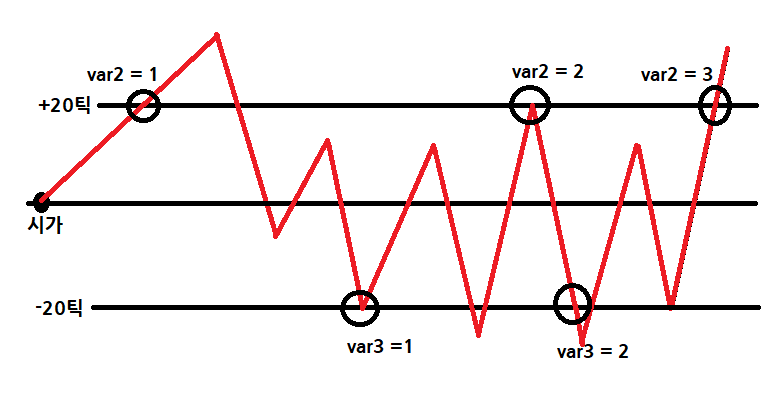 10. var2로 진입시 손절은 30틱, var3로 진입시 손절은 30틱.