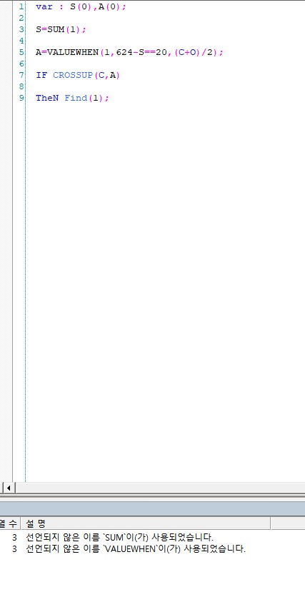 sum, valuewhen은 예스랭귀지에서 제공되는 함수가 아닙니다.