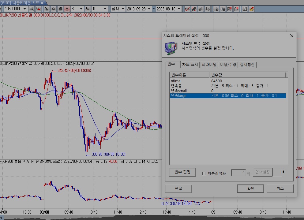 연속봉 2개 조건으로 시뮬레이션을 해보니