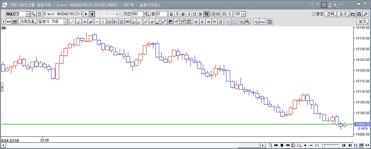 차트창 속성에 현재가를 수평선으로 표시하는 기능이 있습니다.