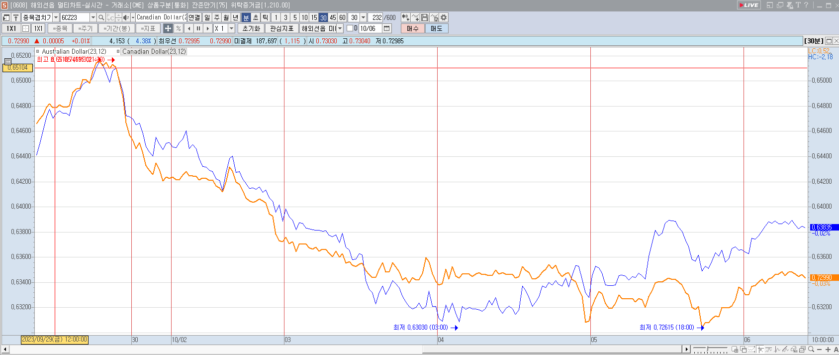 해외선물 스프레드 거래를 하고 싶은데 키움증권등 타 증권사에서는 종목간 스프레드 간격을 알수있는 차트가 없더라구요