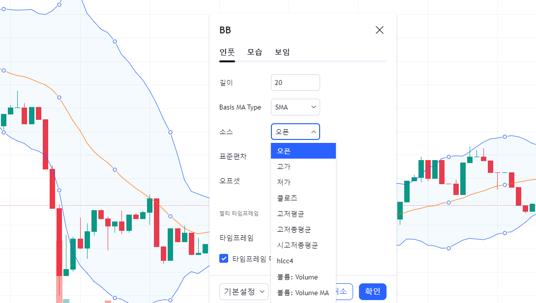 볼린저밴드를 시가를 이용해서 작성이 가능한가요?
