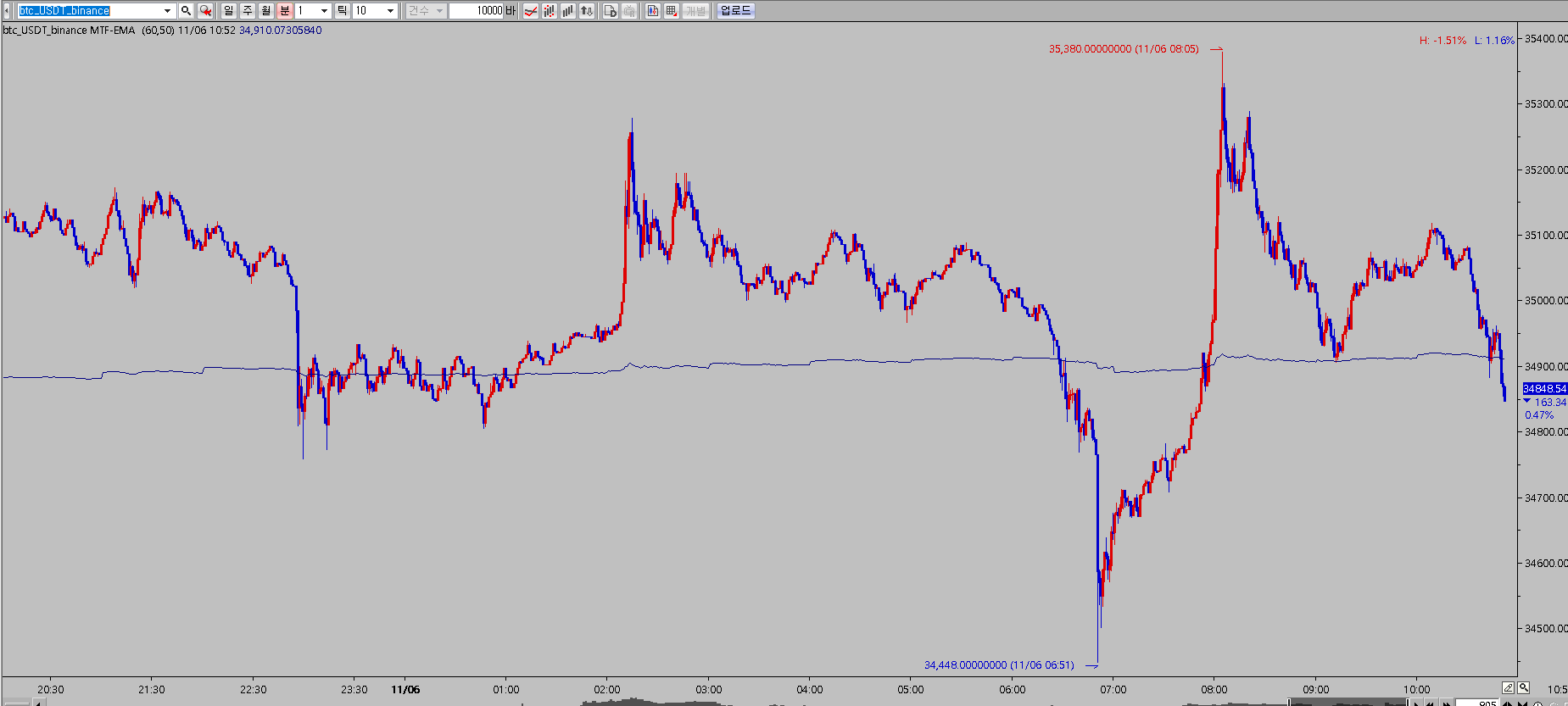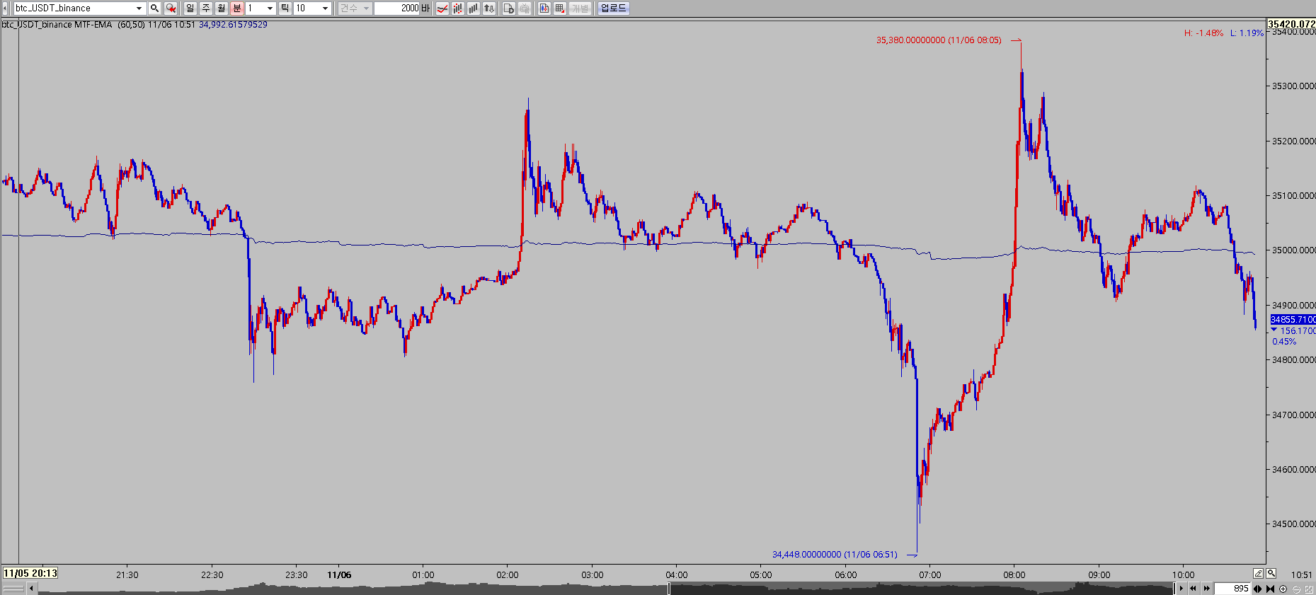 조회된 봉수에 따라 값이 변하는 것을 확인할 수 있습니다.