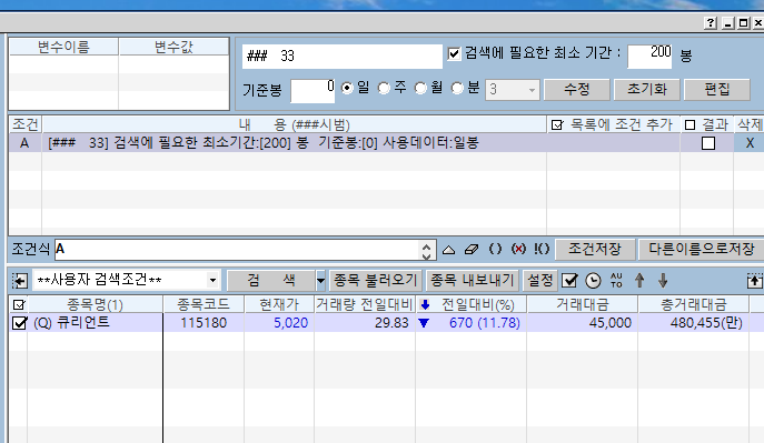 앞전에 작성해주신 대로 검색을 하니 검색 종목이 하나도 안나와서 한개씩만 대입해본결과 1번은 오류 인듯싶고 2번.3번도 재문의 드립니다.