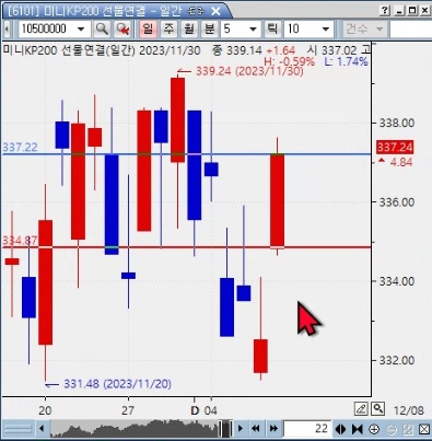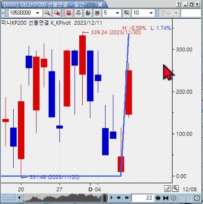 > 마지막 일봉 시가와 종가를 왼쪽으로 연장해서 지표를 그리려고