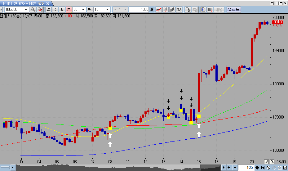 그런데 필요한 것은 8일의 첫봉과 15일의 첫봉의 신호만 유효합니다