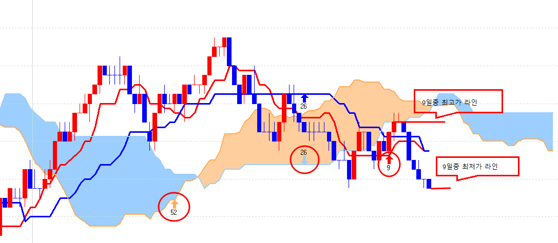 Input: 전환선기간(9), 기준선기간(26), 선행스팬2기간(52);
