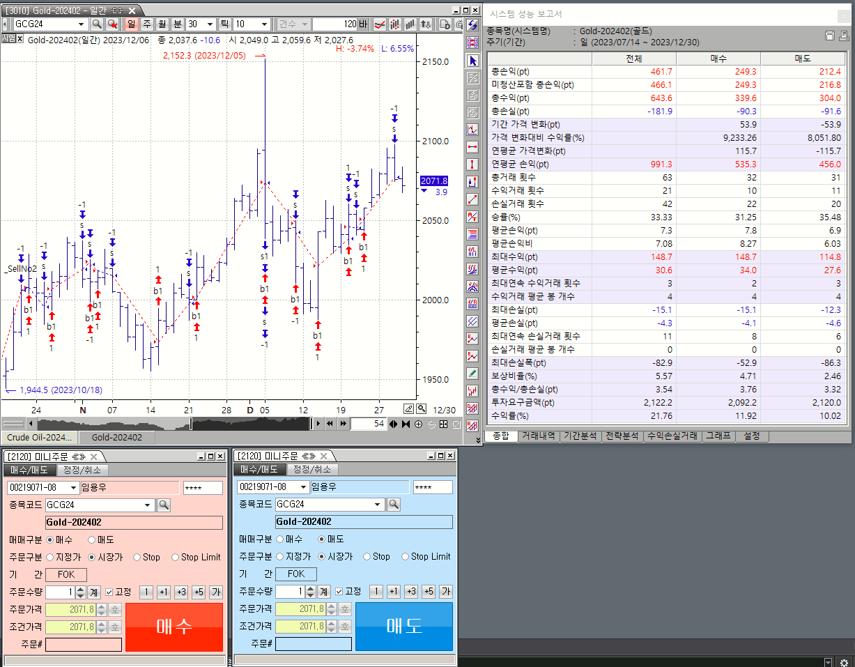 해서 장중 매매 신호발생시 미니 매수, 매도창에 2회클릭으로 체결이 되는 방법이 수식어