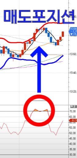 rsi 과매수(1번사진) 거나 볼린자 밴드 상단이탈시 (2번사진)