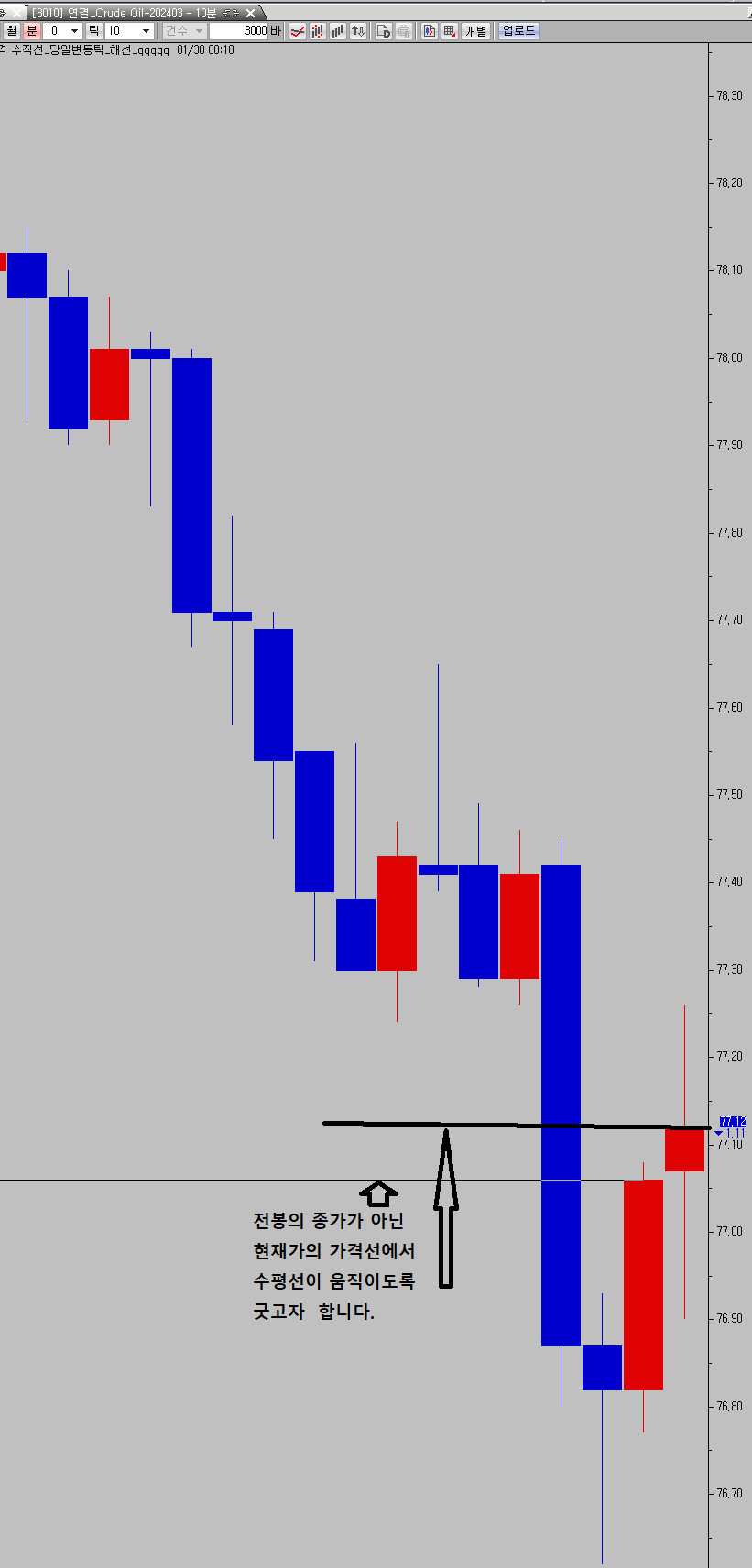 차트 마지막봉의 현재값을 기준으로 그리지 못합니다.