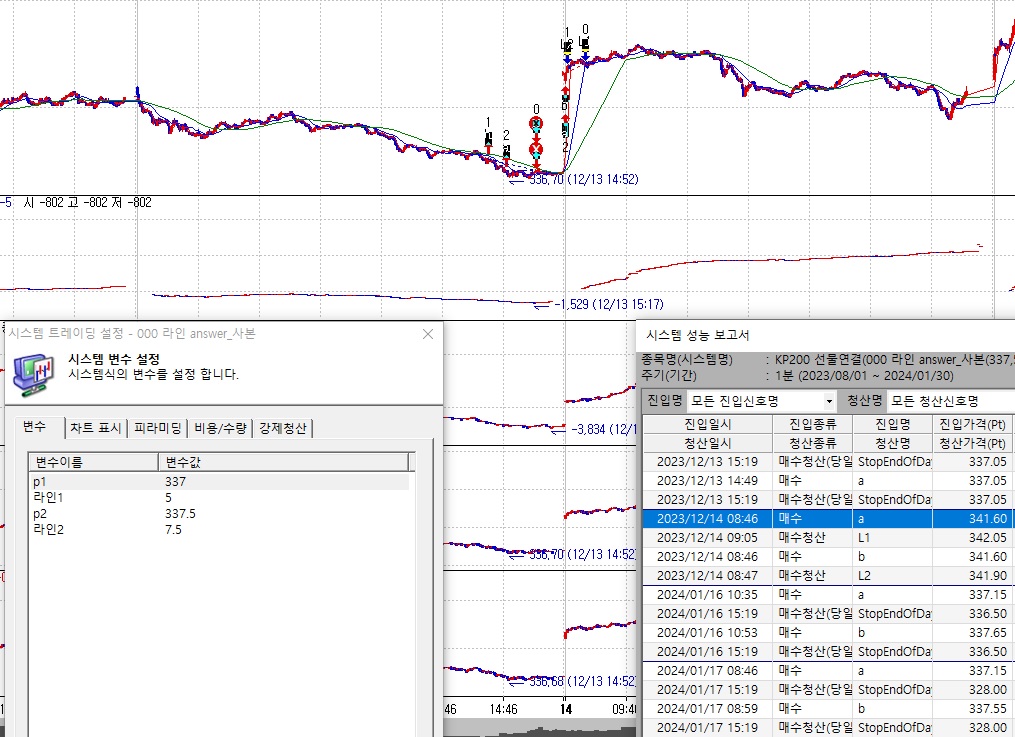 p1 337, p2 337.5 로 진입가격을 세팅했는데 상승갭 발생이 없을 때는 그 가격대로 체결하지만
