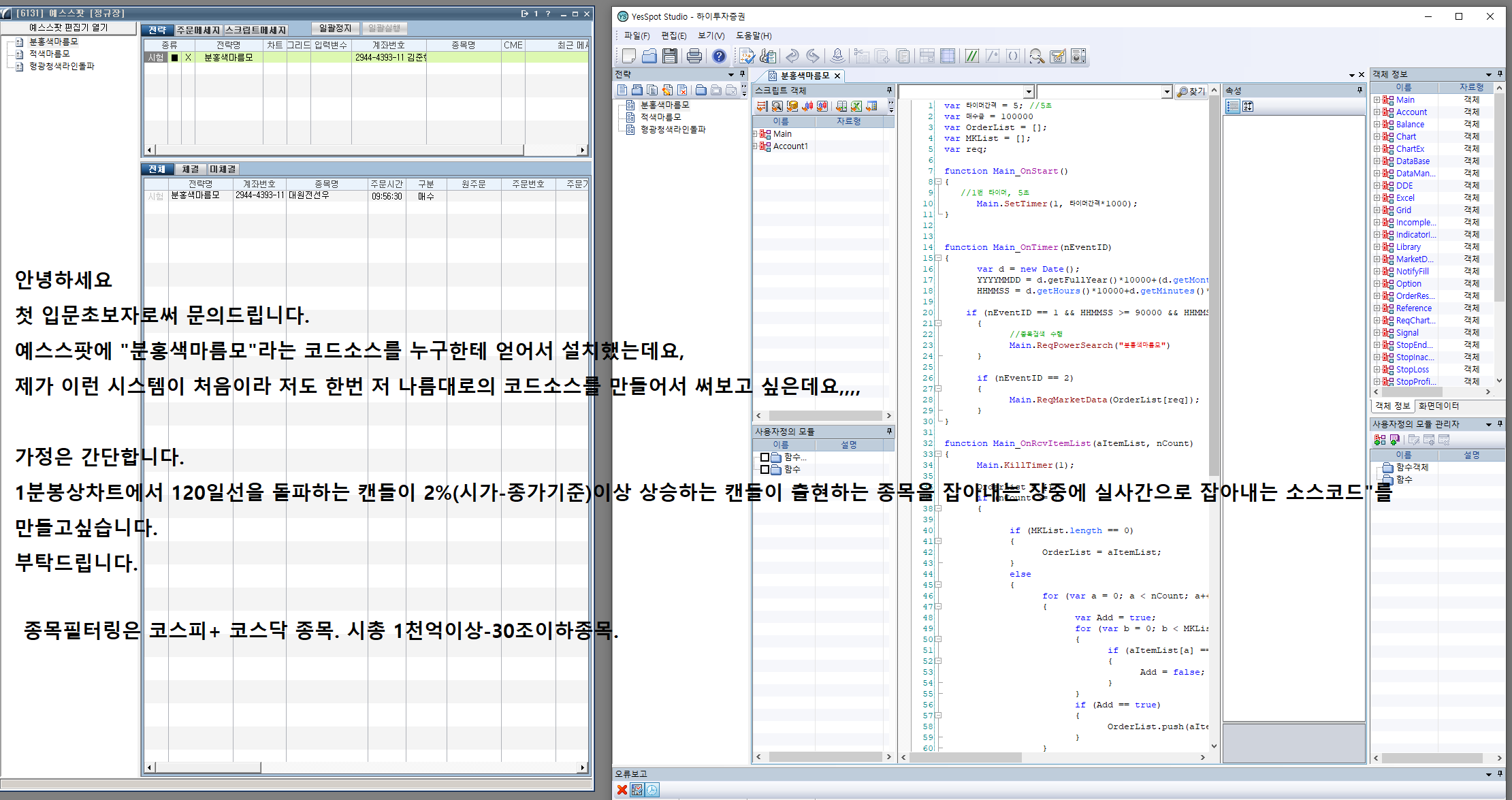 또한 예스스팟은 자바스크립트로 코딩가능한 분들이 사용하시는 프로그램입니다.