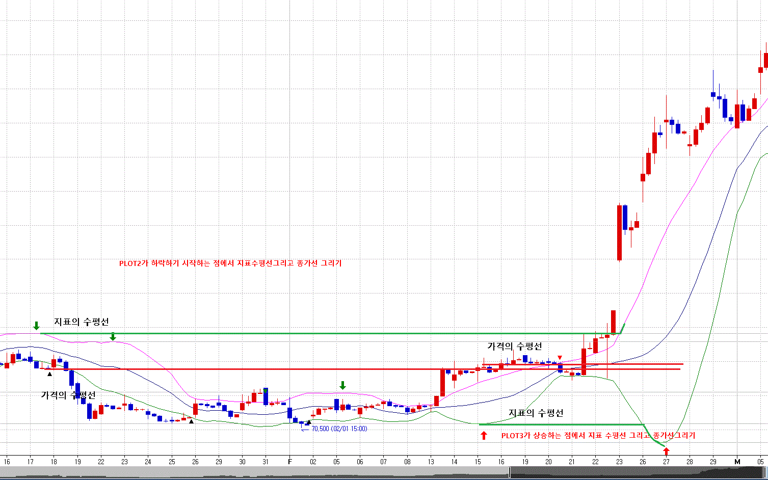 아래지표의 수평선과 종가선을 그리고자 합니다
