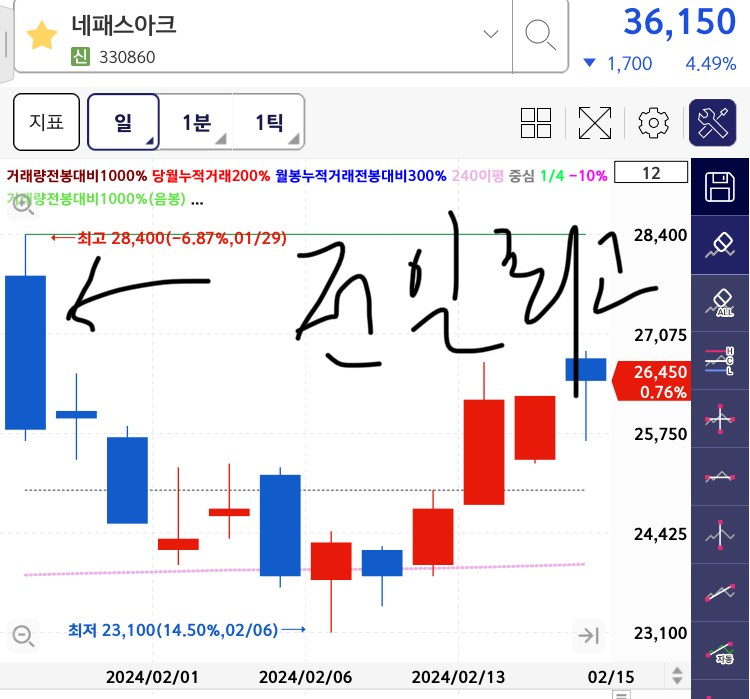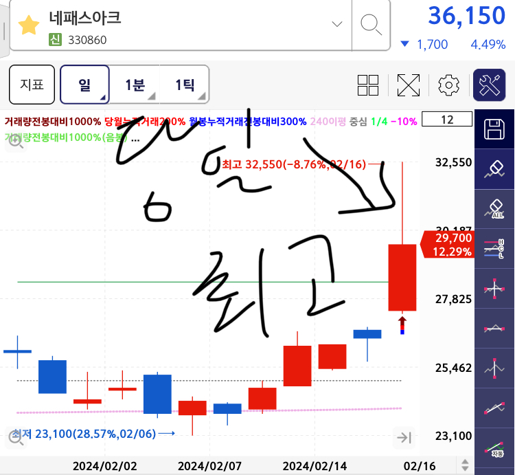 당일 종가가 n봉전 최고가를 양봉돌파하고 당일 고가가