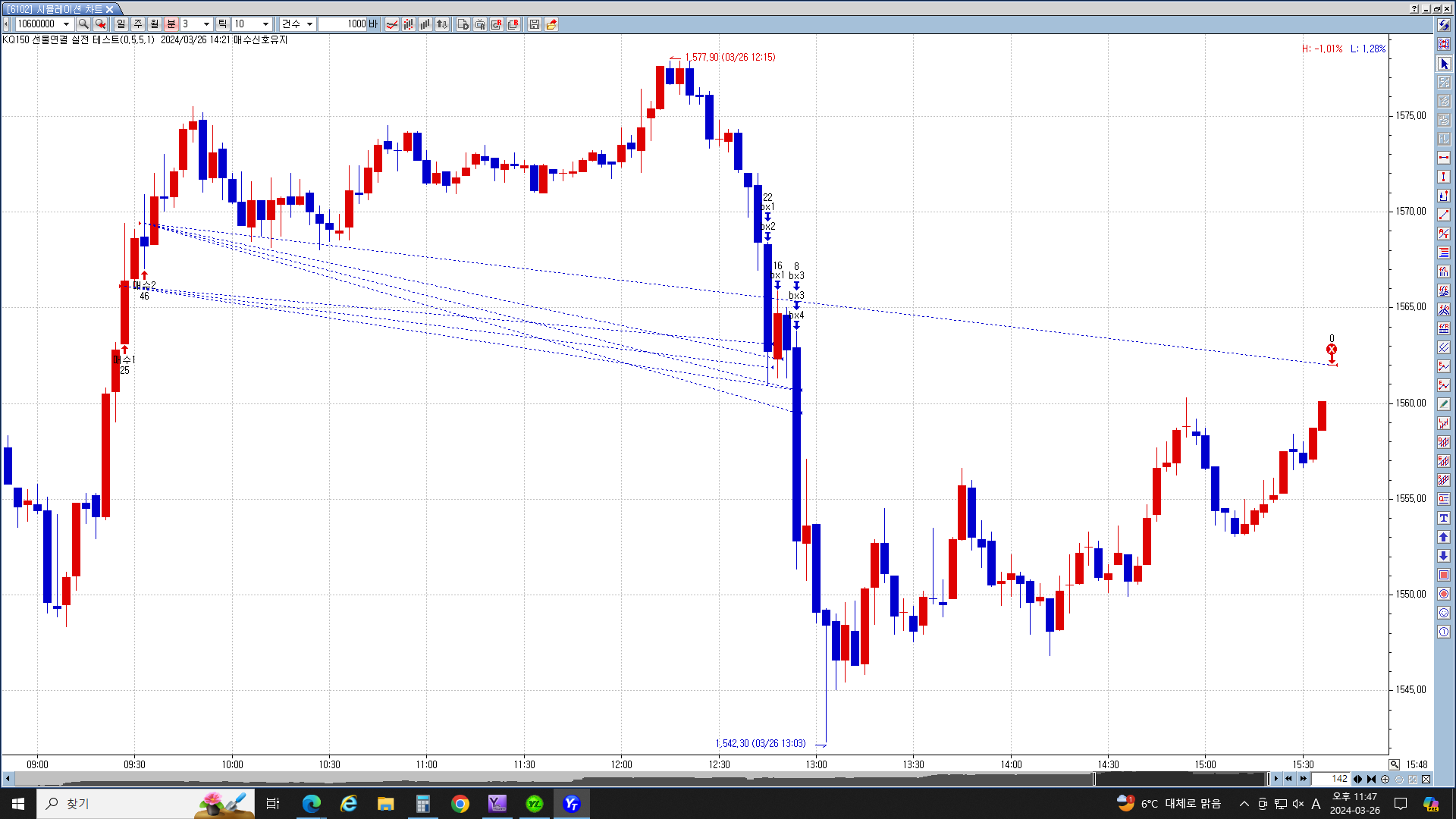 간격을 더 촘촘하게 할 경우 첫봉에서 1,2,3 번청산이 다 발생할 경우