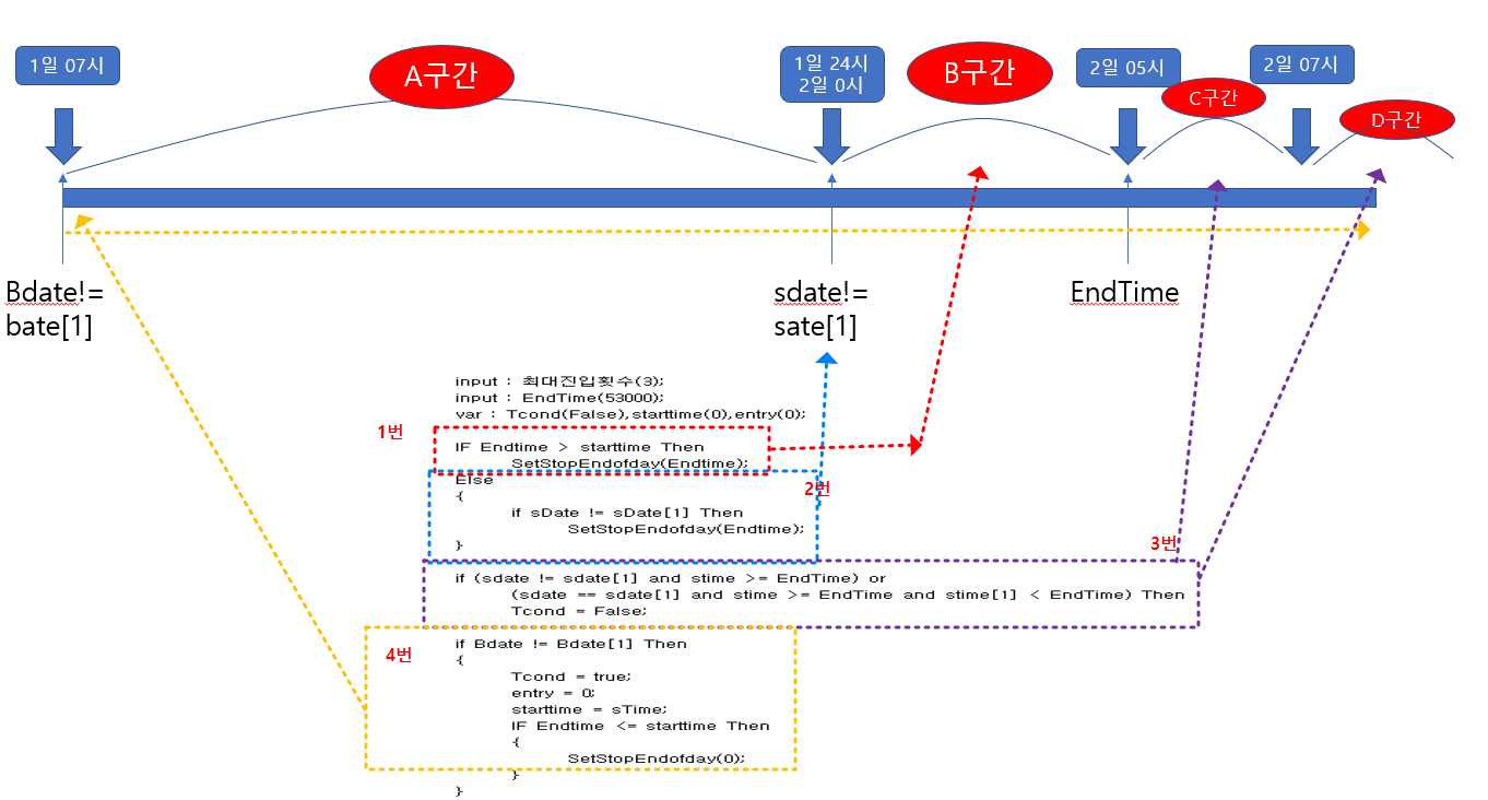 즉 거래시간(Tcond가 true인 구간)은 07시에서 5시 30분이고